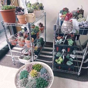 棚の中段、下段の日当たりがイマイチだったので島忠の無料トレーを使用。 このまま外にポイと置けるのでかなり便利♪ んで問題が1つ浮上。 当たり前ですが中段、下段にスペースが空いた。 そう……植中毒症状の一つ 『棚問題』 このまま空けておけばいいだけの話。 このまま空けておけば…。 うぅ…。 無理ぃぃ~