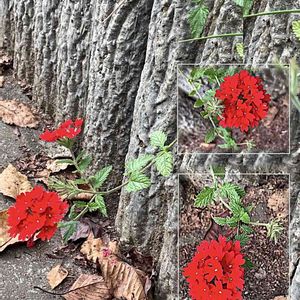 10月、神無月。夏を後にして時季は秋。そして、それは先々への季節へと進む。私の散歩道の道際等の草花達は、今、季節の変化に徐々に順応しようとしている--- 9月からの、より充実した時季を持とうしている草花達の姿 ---その25。 縁石超えて、地面に這おうと真っ赤な唐紅の花。 ---何時ものオープンガーデン。最早、秋風が肌に染み入る季節になっている。 そこに目に想わず飛び込んできた光景である。 真っ赤な、それこそ唐紅の真っ赤な花が、そのガーデンの縁石を超えて、地表、地面に這い入ろうと、茎先のを下げてそれを伺っている草花の姿をそこに観たのである。 その草花は、その茎先に穂状の唐紅の真っ赤な小花を20ほどを付けていた。その片隅には、バーベナ・ハナテマリ(別名ビジョサクラ)の名札が、その葉陰にあった。 バーベナ・ハナテマリ(ビジョサクラ<美女桜>/バーベナ) ・バーベナ・ハナテマリ*<別名ビジョサクラ<美女桜>、バーベナ、ハナガサ<花笠>>(クマカズラ科 ビジョサクラ属) * サントリー開発園芸品種名(出典 ; sunTory flowers ) 全体に灰色の毛がある多年草。耐寒性が弱いため、園芸的には一年草として扱われる。 南アメリカ原産の数種の野生種が関与する園芸種で、多くの園芸品種がある。 茎は地表を這って、上部は立ち上がる。 葉は対生する単葉で、長楕円形~卵状長楕円形で縁に歯牙がありる。 茎先に出る散房状となる穂状花序に20~30花がつく。 花冠は5裂し、花色は赤、桃、紫、藤、白、複色など多様である。 花期は5月〜10月。 (出典・参考; EVERGREEN 他)