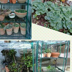 昨日ビニールハウスを組み立てました(*´∀`)♪ 今日 頑張って外組たちを入れました✨明日から かなり寒くなるそうなので のりきってね✨ 多肉にまざり レモンもいます !Σ( ̄□ ̄;)
