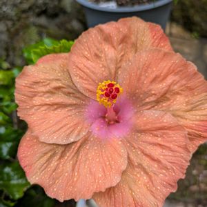 オレンジ色濃いめで咲いたのは… 伊良湖岬オリジナル ハイビスカス ハニーブラウン🌺 同じシリーズのミステリーサークルに、よく似ているようで微妙に違う色合い 春先は… 優しいグレーブラウン🐝🍯を魅せるハイビスカス 美味しそうな名前に…昨年お迎えしたのだった ほんの少し、早朝に秋を感じる今日このごろ ようやくハイビスカス達が本気出して来た?! 台風ペイパーが近づいています 大雨による災害が起こりませんように…🙏✨️