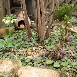 貴重な日差しを浴びる時間。 クリスマスローズの地植えのものが、咲いてきました☺ その1