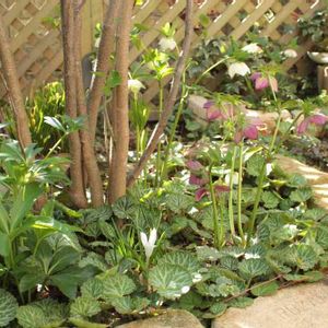マルバノキノ株元は、ユキノシタがもりもり、クリスマスローズに、クロッカス🍀
