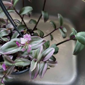 ❁. 。トラディスカンチア ナヌーク。.❁ ピンクの斑入り葉が美しいトラディスカンチア💕 葉裏の濃い紫色とのコントラストが特徴✴︎ ヨーロッパで人気の品種!! 多肉質の葉も魅力的です🌵 背丈が低いので寄せ植えやグランドカバーなど 使い方色々です! 丈夫で育てやすく殖やしやすい植物なので ぜひ見かけた際はお手に取ってみてください😌🌿 *育て方* 日当たりの良い場所を好みます。 水やりは乾き気味を好むので、 土の表面がしっかり乾いてから上げてください。 夏場は直射が当たらない涼しい場所で管理してください。