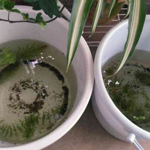 雨あがりのメダカの鉢。気持ち良さそう〜