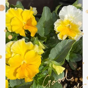 自家採種ビオラ。親はエッグタルト。左のような黄色一色、しかもひげ付きが優勢だったのですが、おや、白身多めチャンがでてきましたよ。エッグタルトらしくていい感じ。ひげも薄まってる?