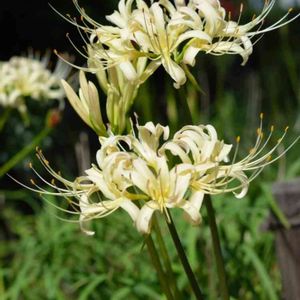 お寺の境内に、クリーム色の彼岸花が咲いていました💛😄