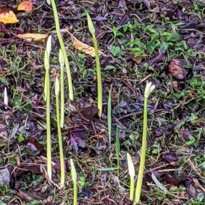 おはようございます。 職場のマイ桜・はなちゃんの下。 月曜日に草刈機かけたら いつのまにか、ぴょこぴょこ。 クリーム色の彼岸花。 花芽が、あがっていました。 さすが。 彼岸花の体内時計は正確です。 まもなくシーズン到来。