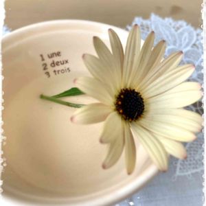 おはようございます😊 今朝は、薄雲のお天気で、これから雨が☔️降る予報です💧 昨日、定植したオステオの一番花🌼 可愛いクリーム色…💛 綺麗に咲いてたので、テーブルへ 次のお花もきっと綺麗に咲きますように…