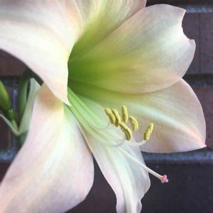 クリーム色の アマリリスが咲きました(^^) めしべがチョンとかわいい❤︎ 白いアマリリスのほうは のんびり屋さん 去年ものんびり咲いてた(^^)