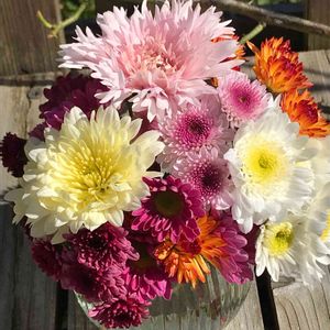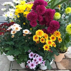 うちの庭の可愛いマムさんたちです💕 いろんなところに飾っています どのコもステキですが ピンクのカーネーションみたいなコは新入りさん 変わった咲き方ですよね