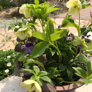 クリスマスローズの鉢植え。 地植えのものよりたくさん咲いてます☺️