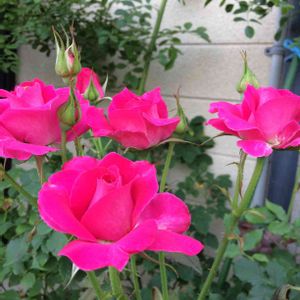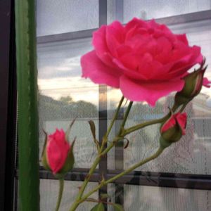 こんばんは〜〜🎵🎶地植え組の薔薇ちゃん🌹🌹大好きだなぁ。名前ははっきりわからない💦窓ガラスに映ってるのは立山連峰かな?私も映ってる?失敗💦💦💦💦