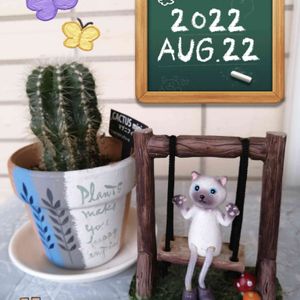 🏷ニャンニャン祭り 参加します🎶 我が家の百均マグニフィクス🌵 育ちすぎて窮屈そうだったのでやっとみたりんさんに🎁して貰った素敵な鉢に植替えきっとε-(´∀`*)ホッ💦ですね~🤭 暑いけど少し秋らしい空気も感じるこの頃 😸ちゃんはブランコに乗せてもらいご機嫌です~🎶