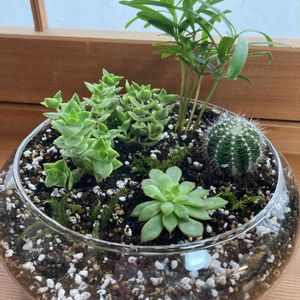 いただき物の多肉植物などでやってみたテラリウム?ただの寄せ植え?境界がわかりません笑 多肉植物を育てるのは初めてなので、ちょっと心許ないです… 多肉植物のアレンジ2021コンテストのタグを付けさせていただきましたが、多肉じゃない子も混じってるし、対象でなかったらすみません(^^; ひっこめます💦