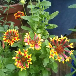 おはようございます😃 台風一過とはならず しばらくは曇りや雨の日が続きそう😥 日光浴したい花たちにとっては 不満が溜まりそうです💦 見切り品だったジニア ジーデコです。 ヒョロヒョロで雨が降ると倒れてたので 思い切ってカット✂️しましたが ようやく咲き始めました😊 これからです💪