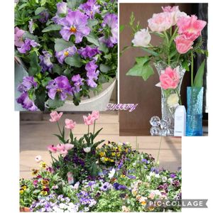 4月16日 (土) 11:26AM 今日の我が家のお花たちです🌸🌷🌼 移動可能な鉢組です🥰 地植えのお花たちは 失敗しました~🤭🤣