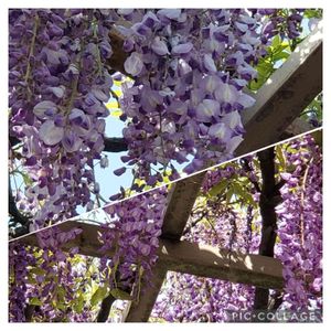 4月23日 (土) 🌞 1:50PM お買い物途中でパシャリ 藤💜さんです 藤を撮るのは苦手です スマホ📱です