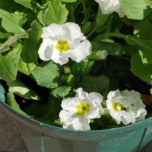 3月19日 晴れ☀️ 今朝8時頃スマホ📱撮りです 昨年2月にお迎えして 夏 冬を越えて 今朝開花しました😊💕 プリムラ·ホワイト🤍さん 良く頑張ってくれました😅