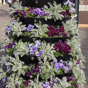 パンジー💜さんが 塔のように~🌸 お出かけ先で飾られていました 素敵ですね🎵