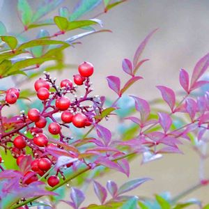 ✨ナンテン✨ 朝の散歩路〜♪ 葉っぱが色づいて〜美しいです𓈒𓏸𓐍 𓇢 実も真っ赤になって来ました〜*̣̣̥◌︎* 南天のど飴•*¨*•.¸¸♬︎ のフレーズ 聞こえませんか〜