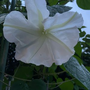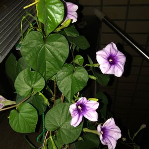 am7 フェンスの裏側に咲いた夜顔🤍 オダマキの葉💚