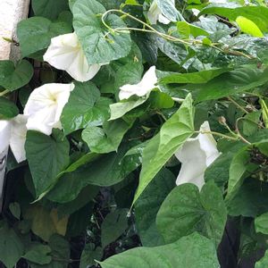 おはようございます☁️ シロバナユウガオ(白花夕顔) 昨年採取した種から♡ 片手くらいの大きなお花で夕方から咲きます シッターチャンスを逃してやっと今朝撮りました 今日も良い1日を🍀