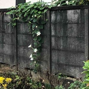 北側の地植えの夜顔 直径15cm 塀の内外15個も咲きました🤍