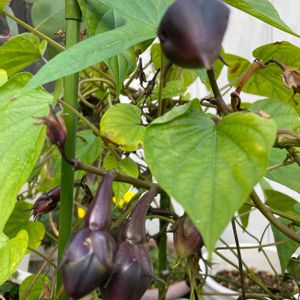 夜顔でした。 これまで夕顔と投稿しています。夕顔とも呼ばれるそうですが、正しくは夜顔と、先ほど図鑑を調べて知りました。 干瓢のできる夕顔とは違ってましたね。子どもの頃の記憶では、干瓢は緑色の瓢箪とか冬瓜のようでした。紫色の実がだんだん大きくなってきたので、別の植物かもと気づきました😂