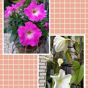 ペチュニアと夜顔 どちらも夏の花ですが今も沢山花が咲きます