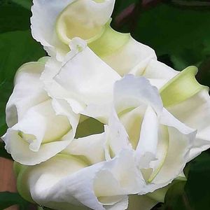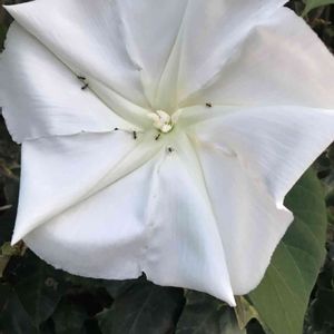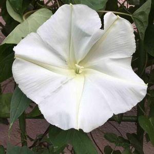 夜顔 夕方開き、明け方には萎んで しまうそうで、夕方 4時半過ぎに 見せていただきました。 手のひらより一回り小ぶりの大きな お花が、台風の翌日綺麗に咲いていました。