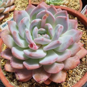 ここのところ白い粉ののりがよくなって葉の模様が浮き上がってきたジョセリン。 白い粉を持つエケベリアは夏に粉を作るイメージがあるけど,他の白いエケベリアを見ても秋になってから白さを増したのが多い気がする。 今年特有の現象なのか元々そうなのかわからないけど,秋の姿の方が見映えがいい。