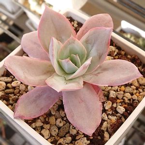 うっすら雪が積もった時の雪景色のような模様になってきたスノーバニー。ラウイや仙女盃と同じで陽当たりのいい場所で管理すると白い粉ののりがよくなる。 時々うっかり触ってしまうのか、アマガエルの仕業なのか、ところどころ粉が剥がれているのが惜しまれる。