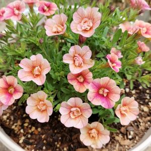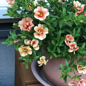 カリブラコア、ティフォシーアンティークNo.38と、ミリオンベル バターポップコーンです 冬越し2年目のティフォシーの勢いがすごくて、バターポップコーンがせまそうです😅 そしてそろそろ切り戻しでしょうか💦