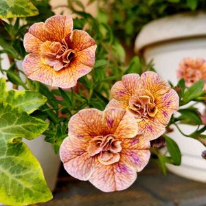 カリブラコアを 今年はじめて お迎えしました ティフォシー アンティークシリーズ NO.4 ピンク?オレンジ?ベーシュ? 優しい色合いです。 ようこそ。我が家へ💕