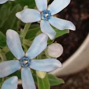 初めて育てているブルースターです。 蕾が💙 ウキウキしますね⭐️ そして葉っぱの手触りがたまらなく良くて、つい多めに触ってしまう。。