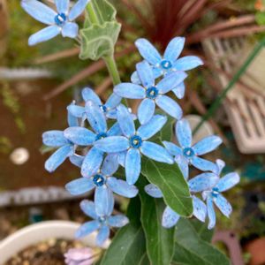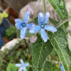 今日のお花〜⭐︎♪ フェリシア🎵 今年は雨ばかりで花がほぼ咲きません😭 なんとか腐らずに育っていますが、、ヒョロヒョロです。