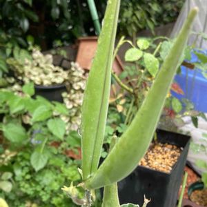 オキシペタラム ブルースターの鞘❗️ 沢山咲いても鞘を付けてくれた事が無かったので初めて見ました😲 いや、、デカい、、😅 予想以上にデカくてちょっと引いた笑笑 種取りたいなぁ😊