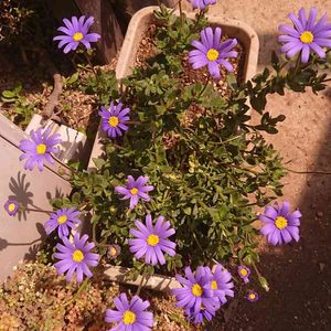 いい天気が続きそうです。我が家のブルーデージー。陽に当たって気持ちよさそう。いい色です。