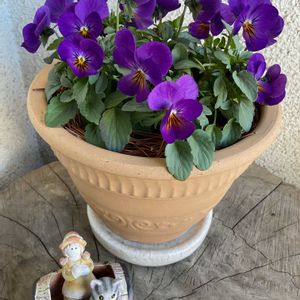 おはようございます😃 種から育てたビオラ「あかつきももか」の寄せ植えがもりもりしてきました❣️