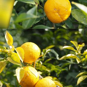 レモン まだ青い頃、一度投稿しました。 あのレモンが少しずつ色付いてきました🍋🍋🍋 ほっこりする光景です🍀