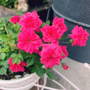 ミニバラ盆栽 ストロベリージャムもいい具合に咲き揃い出しました😊 No.6