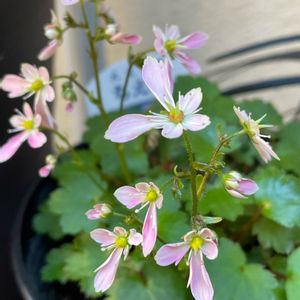 ダイモンジソウ・ちえみ🌸🍀 (大文字草)No.1 我が家のダイモンジソウが咲いて来ました🎶 5個の花弁のうち下の2個が長く全体で「大」の字に見える事から和名が付いたとされる。 中心がうっすら緑っぽいこの子、違う鉢に🏷が移動していました😅 2年目の今年は花数は少ないですが真っ先に咲いてくれました😍