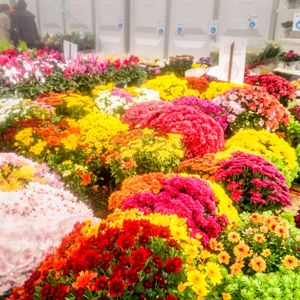 ヨーロッパでは11月1日は 日本の お盆にあたる日です 街のスーパーの駐車場 に 設置された お供え用花の売り場です 主に菊ですが シクラメン その他寄せ植えの鉢 があります 家内と 2鉢買ってきました
