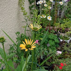 ~エキナセア~ 挿し芽した苗 直径9cmくらいの小さいポリポットのまま… 写真じゃ分からないけど花茎が1mくらい伸びてます 大きめの鉢に咲いてる花はその半分くらいの高さ 去年もそーだったけど小さい鉢だと異様に伸びるなぁ〜 うちは狭いから小さい鉢で咲いてくれるのは助かります🙇💕