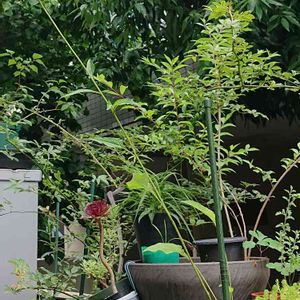 今日の ~モッコウバラ~ 花が終わりかけた頃 剪定して✂️不要な芽は摘みました。 with. . ...… 左💦からスモモ 挿し芽で増やしてるキンギョソウ エキナセア(緑色の鉢) モッコウバラの株元には種ばら蒔きwオダマキと子宝草 オダマキは今年出た芽🌱なので再来年くらいに咲くかな~ …の前に間引き💦