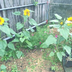 お庭づくりは、進んでないけどひまわりたちがどんどん咲いてくる🌻