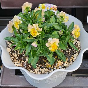 最近購入のお花たち植え付け。ここのところ晴れの日が少ないので、平日だけど朝頑張りました。 1枚目:ダイアンサス あなたにキュン ずっと探してたけど見つからなかったのでハルディンの通販で購入。これ大好きなんです。来年までちゃんと育てられますように🙏 2枚目:ミルフル 素敵な色を見つけたので衝動買い(笑) 3枚目:プレミアムビオラ カリフォルニアコレクション 花色が妙に目に止まったので。ディージェイと同じメーカーさんらしいので期待。 4枚目:イリスプリエール 初めて育てます。絶妙なアンティーク色が最高にかわいい😍 5枚目:プレミアムビオラ ディージェイ 毎年育ててるディージェイ、今年はいつもと違う色にしました。ハニービー?でいいのかな?