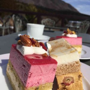 シェ・タニさんで頂いた✨ ケーキセット🍰☕️ 空気も美味しくて。。 こんなに食べちゃった😅👍 九重の山々をバックに⛰ 明日から頑張ろうね。。 父ちゃん😊💕