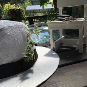 わっ、こんな時間💦出かける準備。 ドライブのお供のハットにもグリーンを🌱 ハットはもちろんお花柄です🌹笑