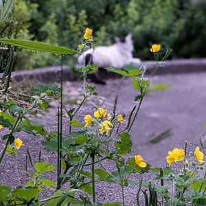 今朝 雨の降り出しそうなどんよりしたお天気に 草の黄の黄色いお花が【読書する少女】にそっと寄り添ってあげていました ぎんねこさんの 🏷ガーデン雑貨(いきもの) 🏷グリーンアクセサリー♪